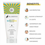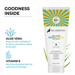 Shield your skin with Dr. Sakhiya's Aloe Vera Extract Sunscreen (50gm)! This lightweight formula offers broad-spectrum UVA and UVB protection with SPF 30 PA+++, safeguarding your skin from sun damage and premature aging. Enriched with Aloe Vera extract, this non-greasy, non-sticky gel absorbs quickly and leaves no white cast. Perfect for all skin types, it provides daily sun protection without clogging pores or leaving a heavy residue. Waterproof and suitable for outdoor activities, Dr. Sakhiya's Aloe Vera Extract Sunscreen keeps you protected and worry-free, allowing you to embrace the sun confidently.