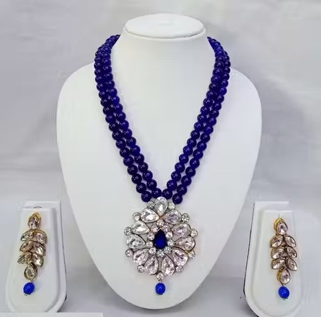 Jewel City Traditional Handcrafted Ethnic Blue Beaded Necklace Set with Gold-Plated Finish & Studded Stones