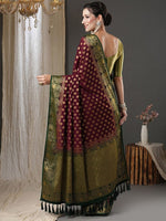 • Burgundy and green kanjeevaram saree