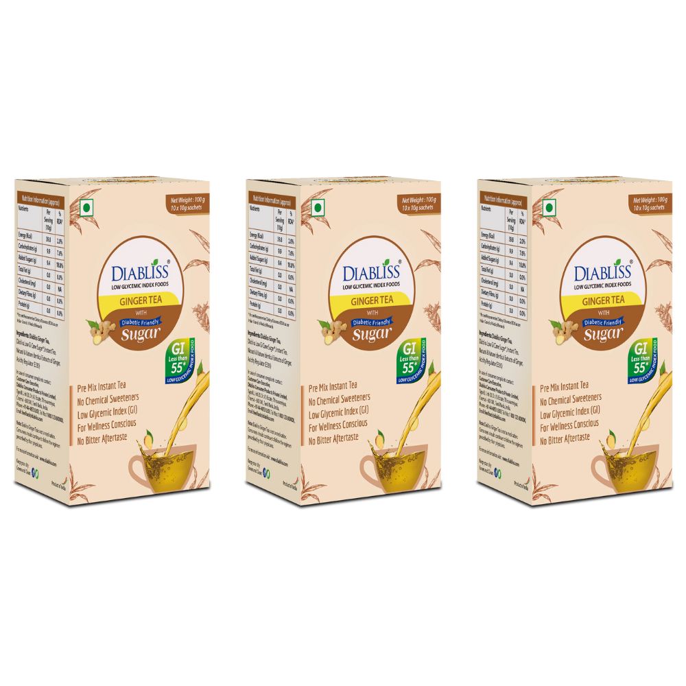 Diabliss Ginger Tea Sachets With Diabetic Friendly Sugar 1 sachet = 10 gm Ingredients: Instant ted extracts Natural ginger extracts Diabliss Herba...