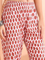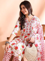 Ode by House of Pataudi Floral Printed Pure Cotton Kurta with Trousers & Dupatta Product Details Red & white ,green printed Kurta with T...
