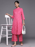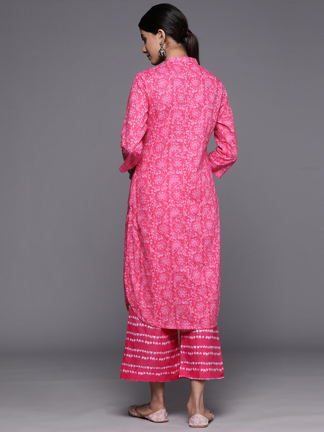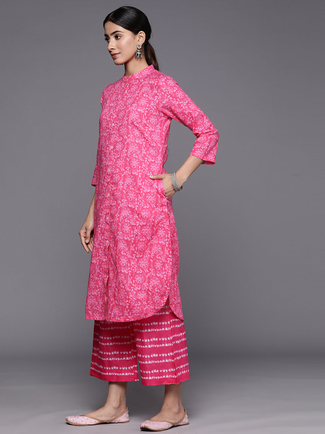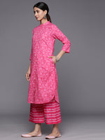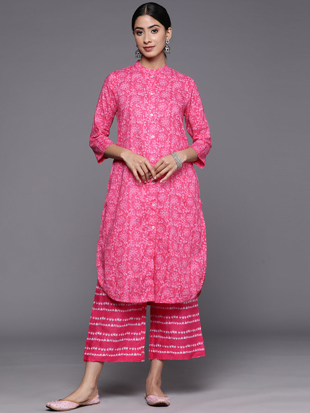 Biba Women Ethnic Motifs Printed Pure Cotton Straight Kurta with Palazzos Product Details Pink and white printed Kurta with PalazzosKurta design...