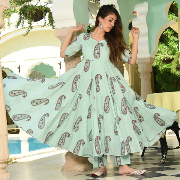 PartyWear Designer Powder Blue Pure Maslin Palazzo Suit - Anbazaar - M(38)