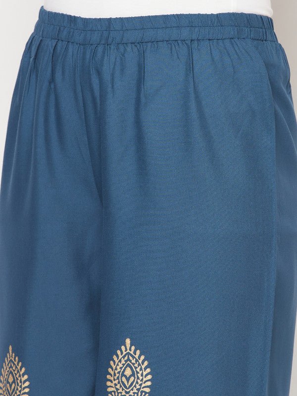Aniyah Rayon Block Print Flared Slip-on Blue Palazzo - S