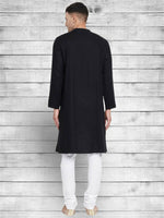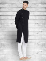 Even Apparels Black Cotton Linen Asymetrical Kurta - Black