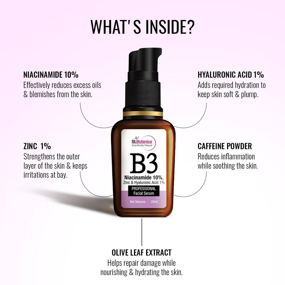 St.Botanica B3 Niacinamide, Zinc & Hyaluronic Acid Professional Facial Serum - 20 ml