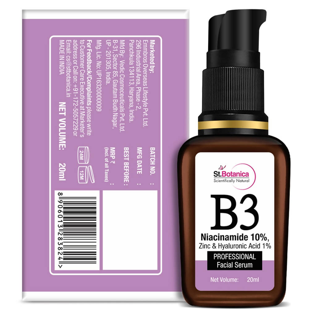 St.Botanica B3 Niacinamide 10%, Zinc & Hyaluronic Acid 1% Professional Facial Serum: 20 ml