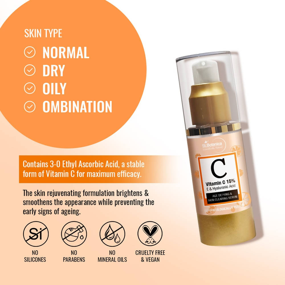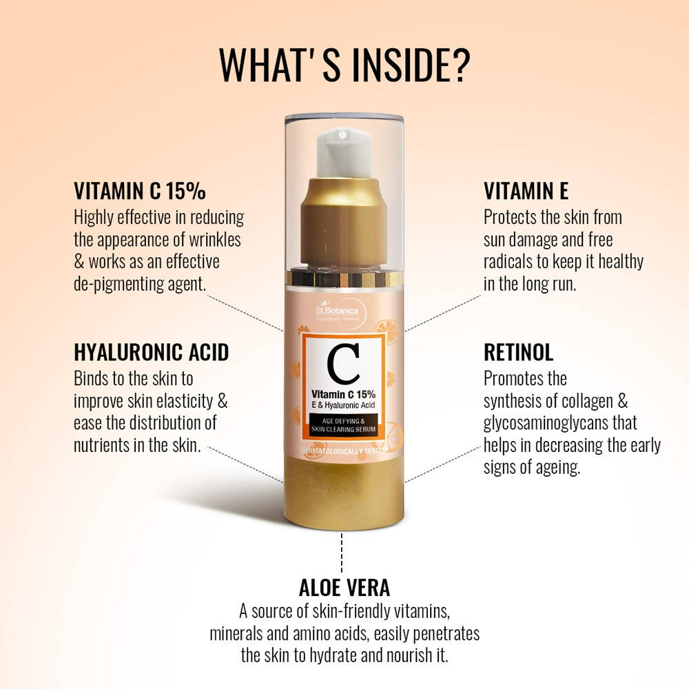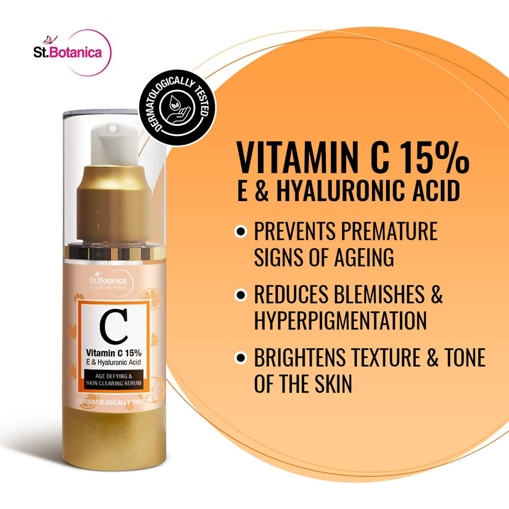 St.Botanica Vitamin C 15% E & Hyaluronic Acid, Age Defying & Skin Clearing Serum - 30 ml