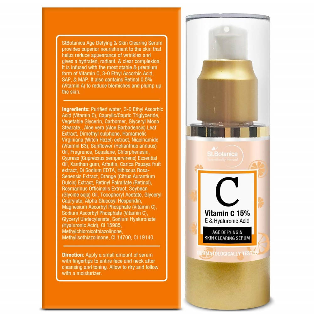 St.Botanica Vitamin C 15% E & Hyaluronic Acid, Age Defying & Skin Clearing Serum: 30 ml