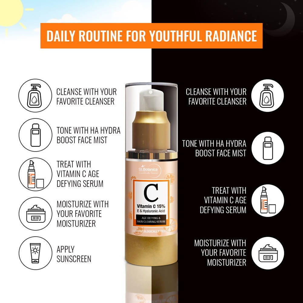 St.Botanica Vitamin C 15% E & Hyaluronic Acid, Age Defying & Skin Clearing Serum: 30 mlBy assisting in increasing skin hydration and improv...