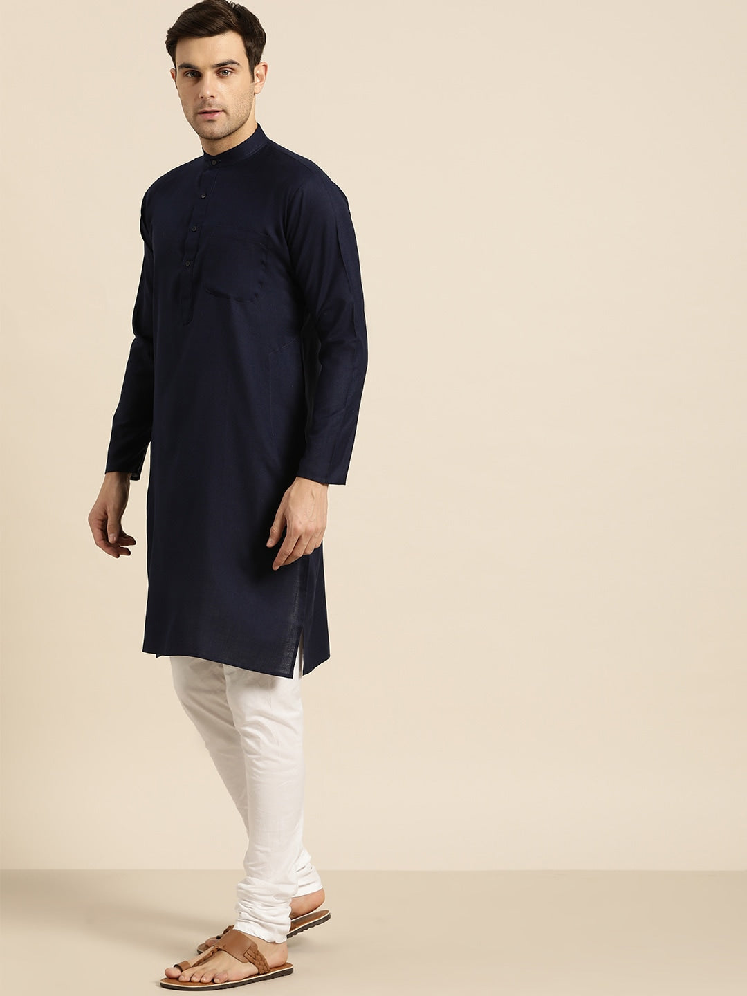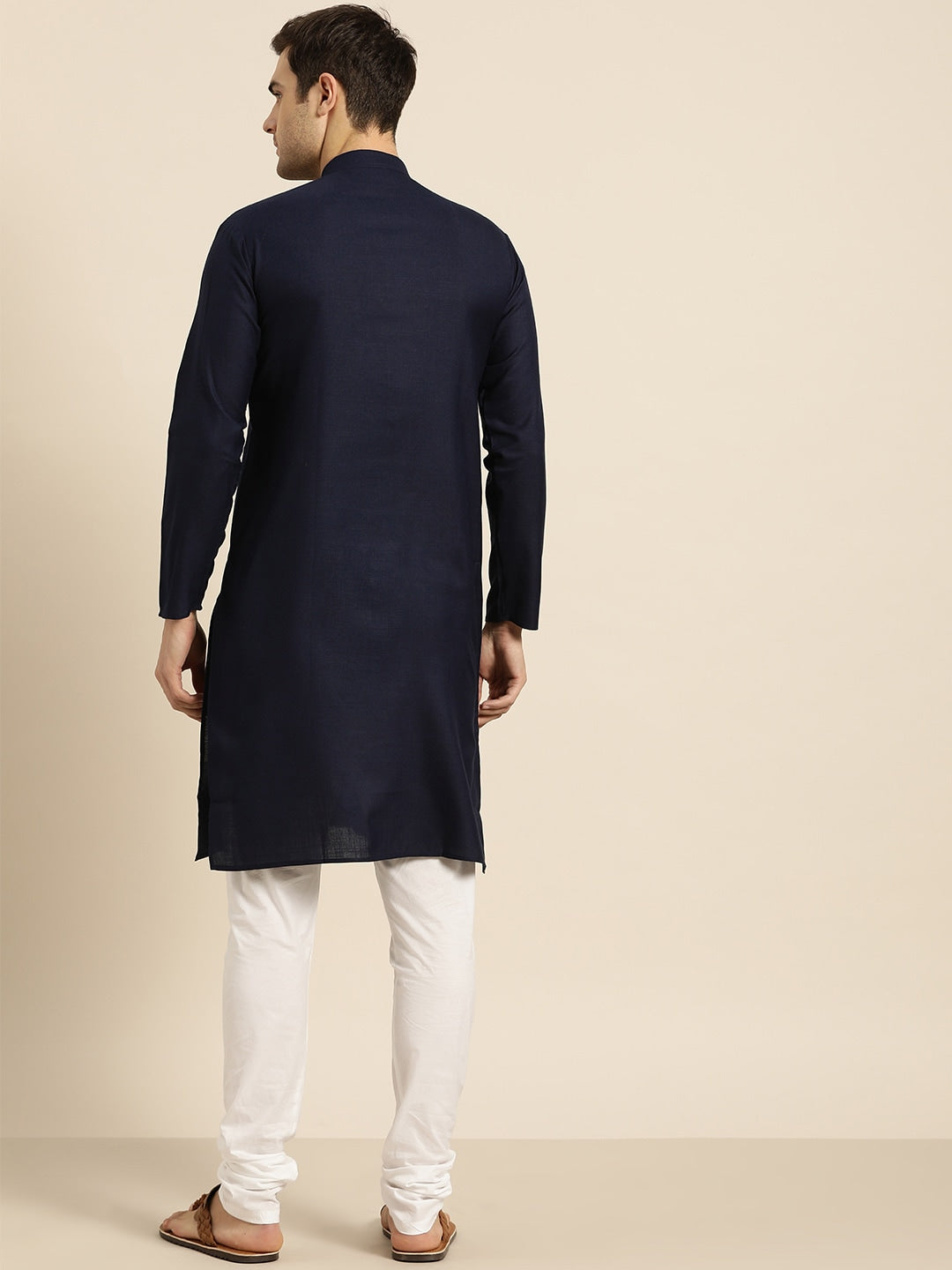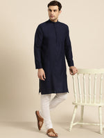 Sojanya Men Navy Blue Solid Straight Kurta - Distacart