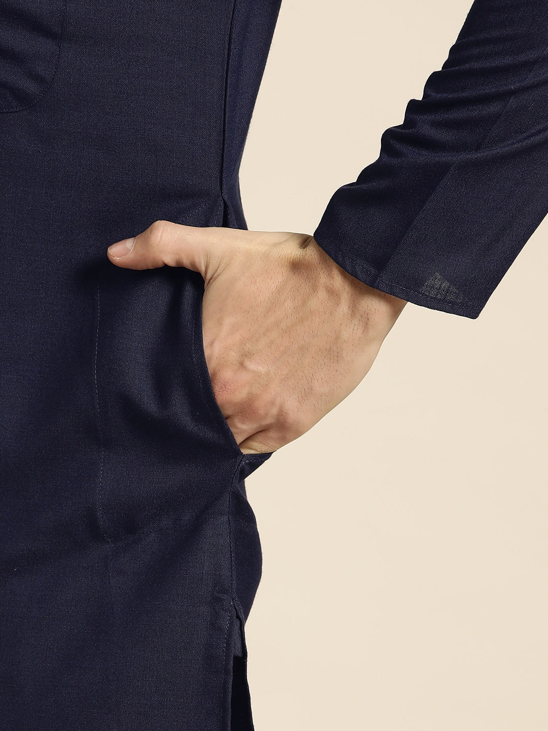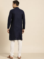 Sojanya Men Navy Blue Solid Straight Kurta - S