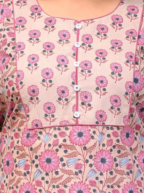Swasti Women Ethnic Motifs Printed Floral Kurta Product Details Colour: beige Ethnic motifs printed Round neck Short, regular sleeves ...