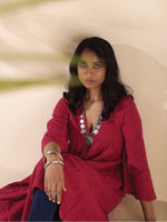 trueBrowns Carrot Cotton Dobby Flared Kurta Pant SetDescription Cotton Dobby Kurta with gathered yoke, flared sleeves and overlap V-neckline. Paire...