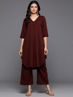 Varanga Women Maroon V Neck Kurta SetMaroon V Neck Top ,Three Quater Sleeves With Tonal BottomAbout the Product: Pack contains: 1 Kurta, 1 Bottom ...