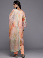 Varanga Women Peach Silk Floral Printed Beads And Stones Embellished Kurta Set With Dupatta - M