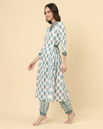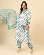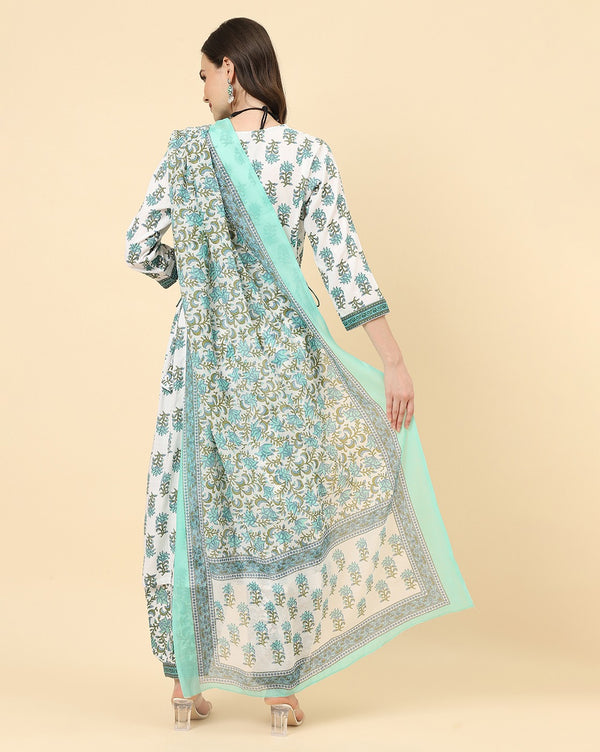 Varanga Women White Viscose Rayon Printed Regular Kurta With Trousers & Dupatta - S