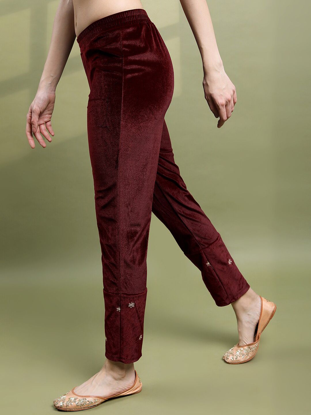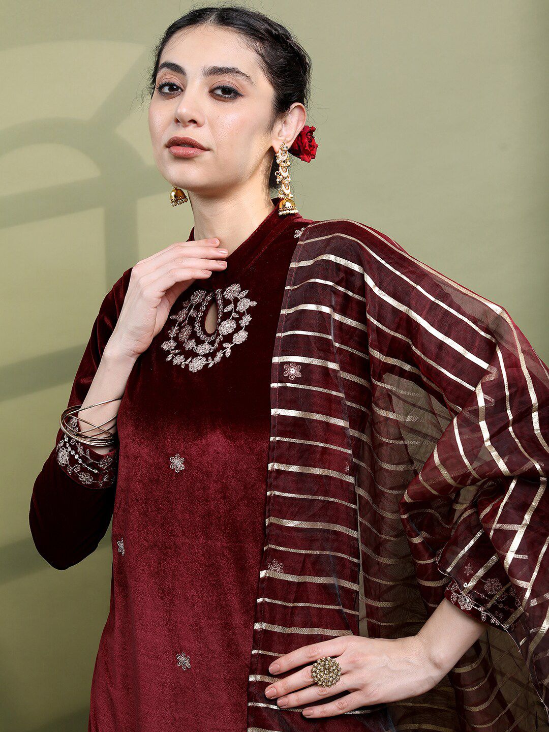 Vishudh Women Floral Embroidered Knitted Velvet Kurta with Trousers & With Dupatta - Distacart