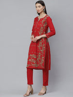 Showcase your unique personal style in this red kurta set from ADA. Accessorize this kurta set with sparkly earrings and bangles for a romantic date-night look.