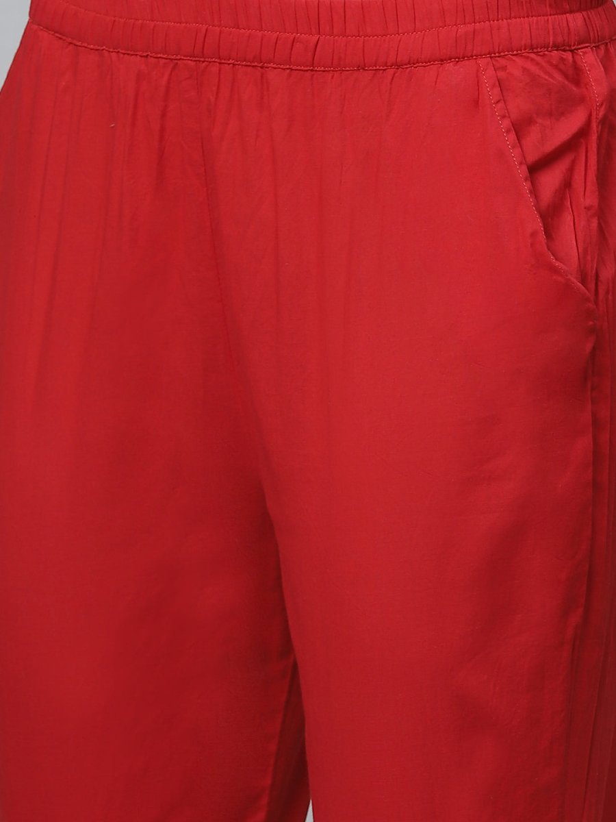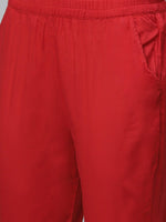 Red Solid trousers, has elasticated waistband, slip-on closure and two pockets