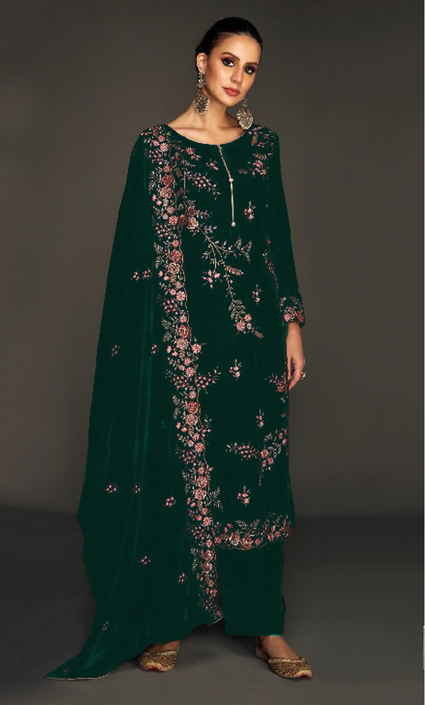 Anaita Green Pure Velvet Stitched Suit with Heavy Embroidery Sequence Work Length of Kurta: 42 Kurta Style: Straigth Kurta Fabric: Velvet Kurta...