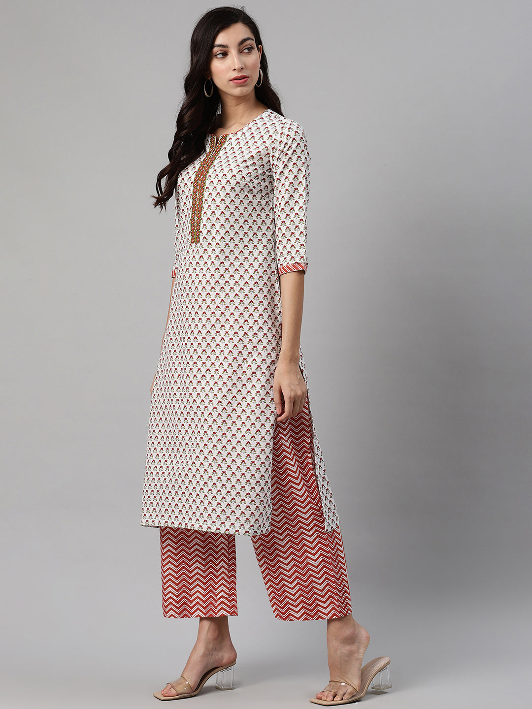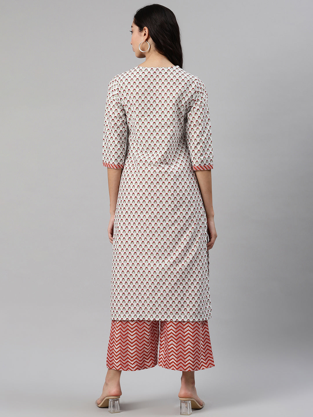 White and maroon printed kurta with palazzos