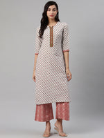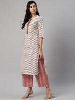 Biba Women White & Maroon Printed Kurta with Palazzos