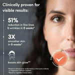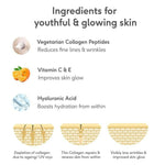 • HK Vitals Skin Radiance Collagen Veg has VegCol (Vegetarian Collagen Peptides) which has the same amino acid profile as marine collagen (known to be more potent) & is clinically proven for results in 8 weeks. VegCol is created from amino acids which have been extracted from a blend of vegetables like Brocolli, Carrots, etc. Ketpase, a nature-based blend of proteolytic enzyme is then added to help structure these building blocks into collagen molecules. Vegetarian Collagen Peptides in this collagen supplements for women & men help replenish the skin's lost collagen directly. It also has antioxidants like Vitamin C and E that help boost skin glow and radiance. It has hyaluronic acid that is proven to improve skin hydration. It also helps in reducing dullness and making the skin smooth & supple.