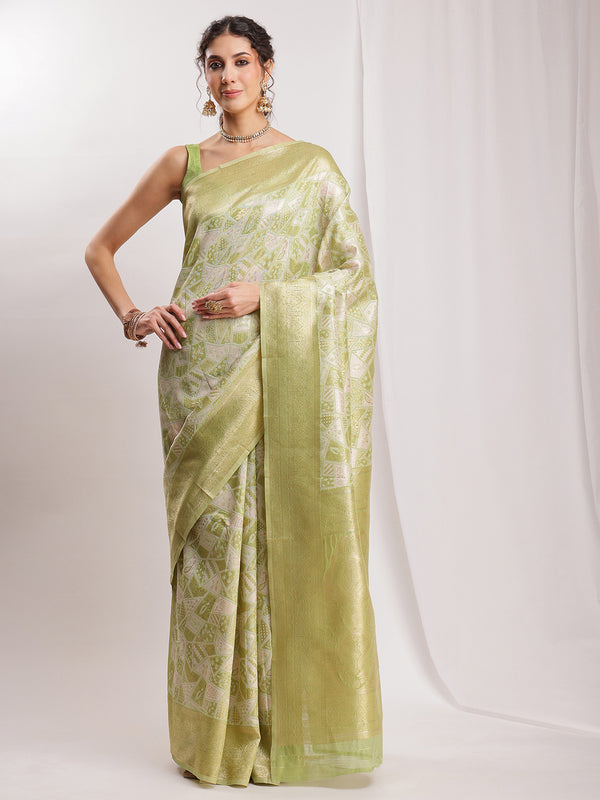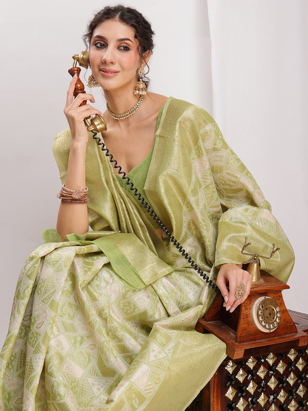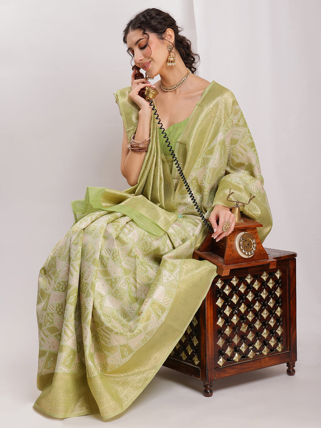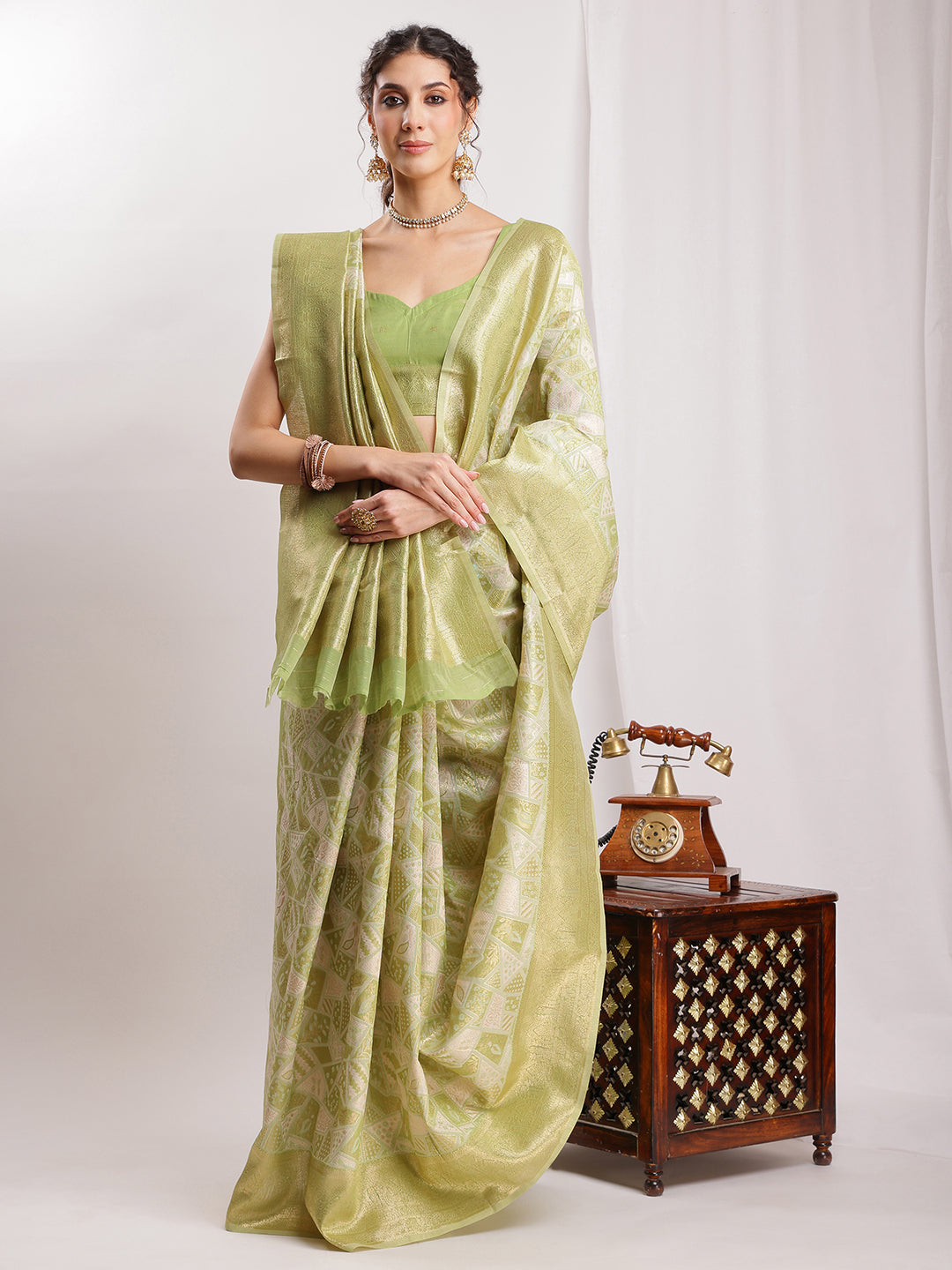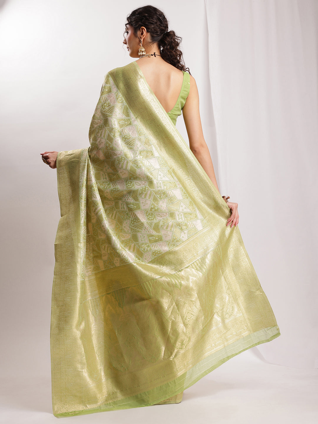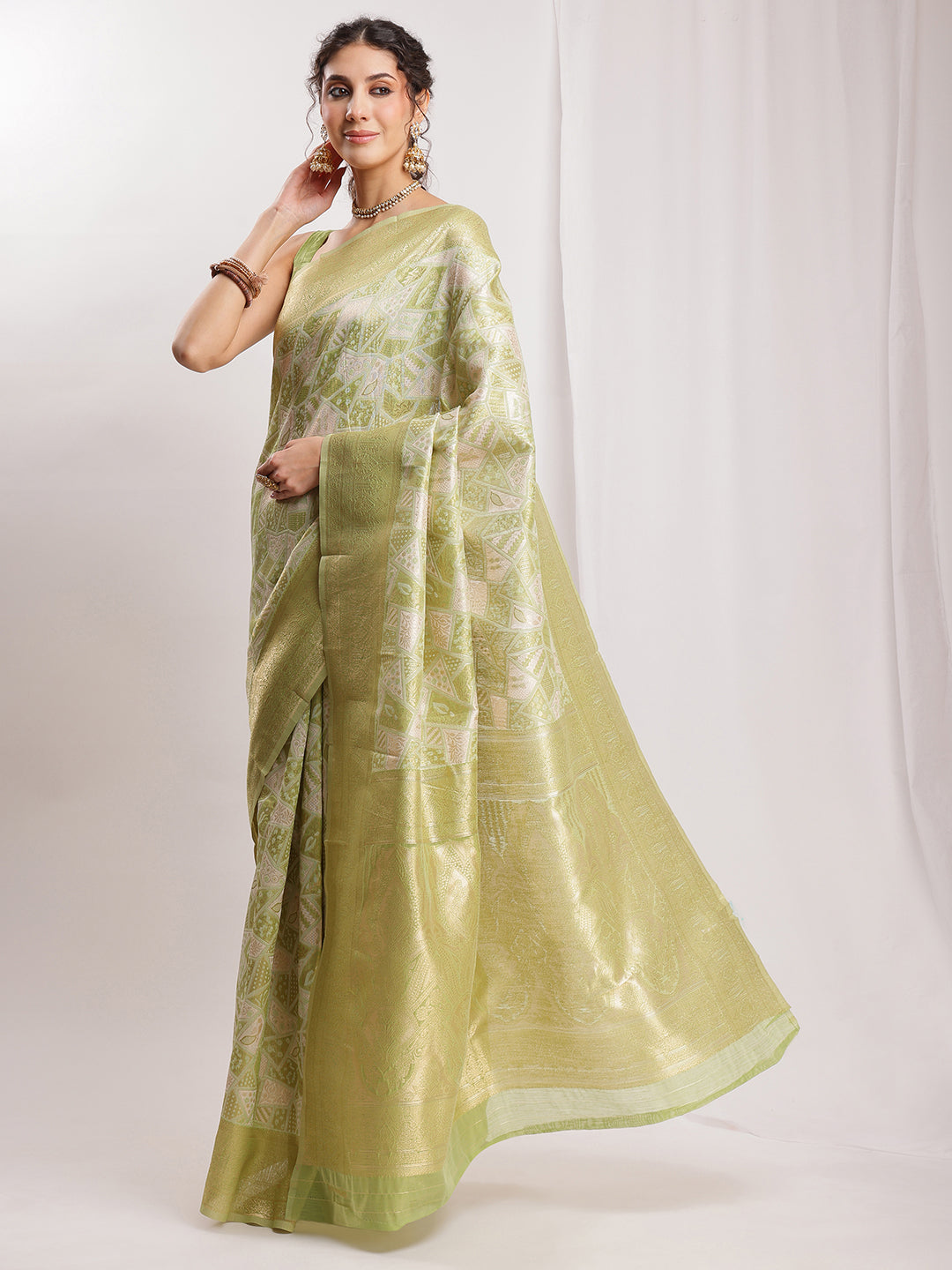 Janasya Green Silk Blend Geometric Jacquard Saree