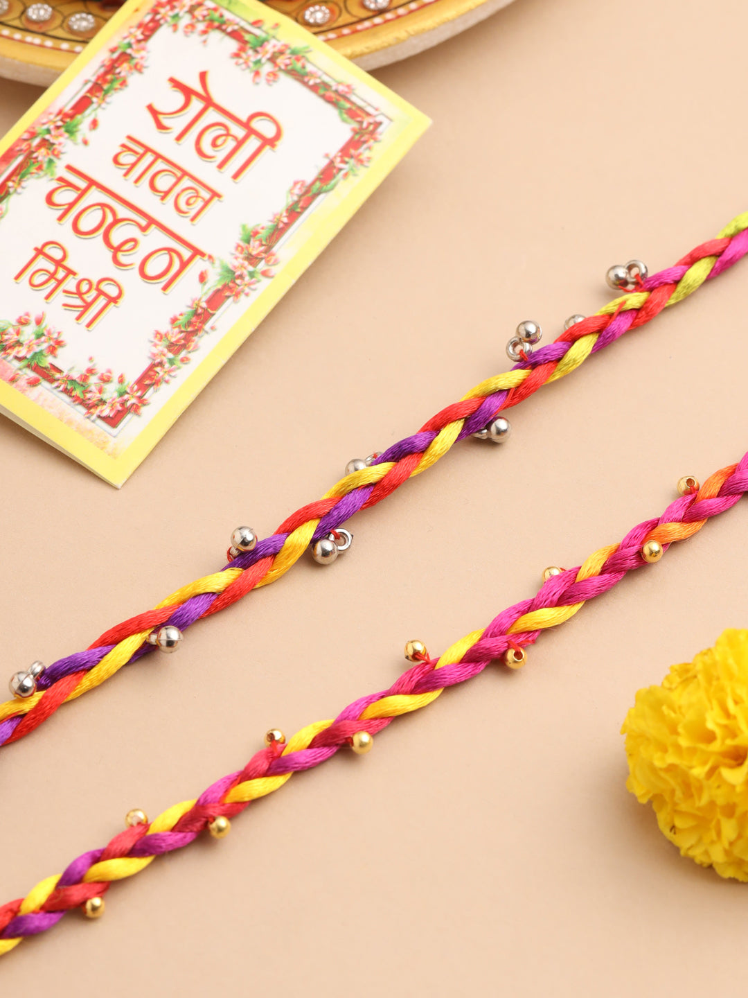 NVR Men Multicolor Artificial Beads Thread Rakhi with Roli Chawal Chandan & Mishri
