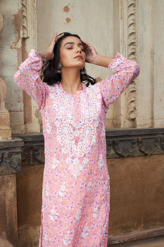 Eliza - premium georgette kurta with intricate handwoven chikankari work Premium mulmul inner provided with the kurta in same colour