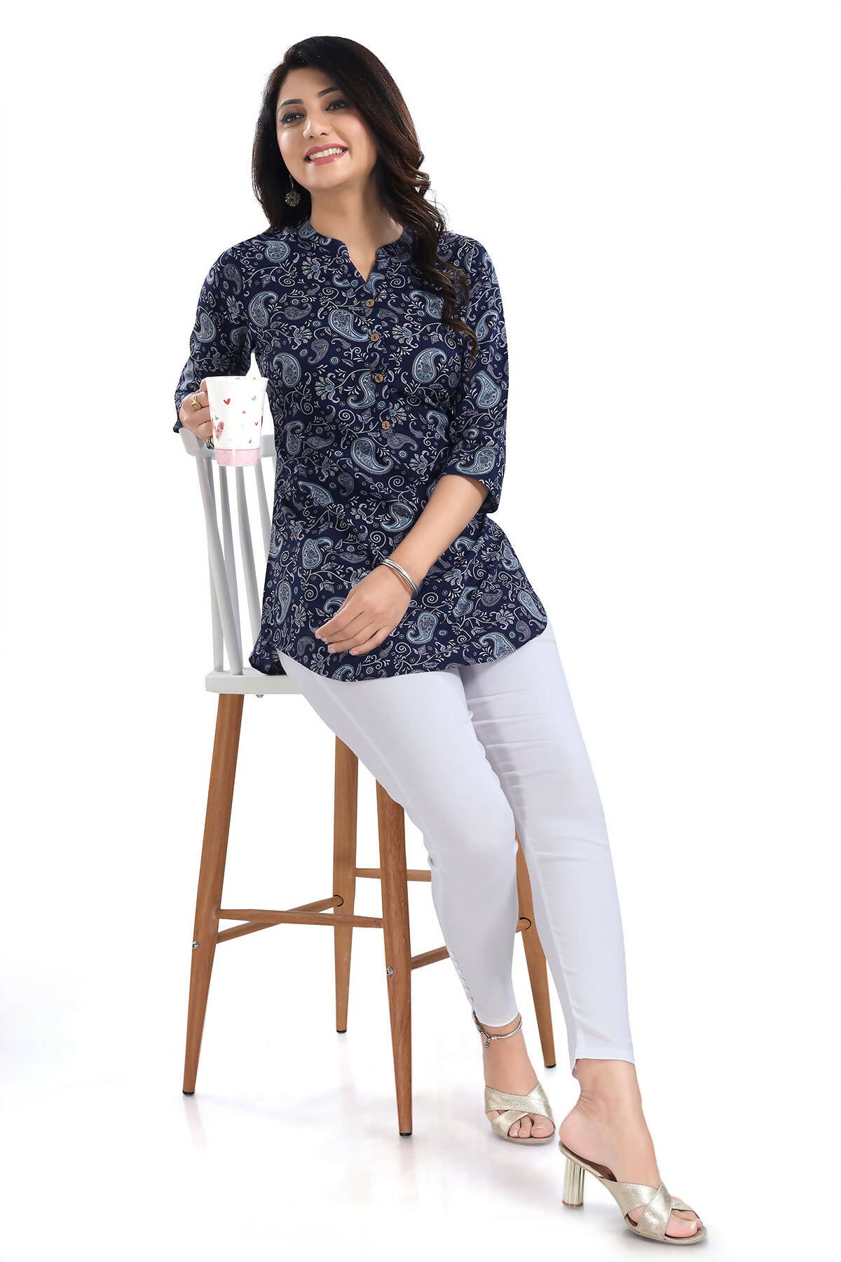 Snehal Creations Ethnic Galore Blue Short Tunic Top for Women