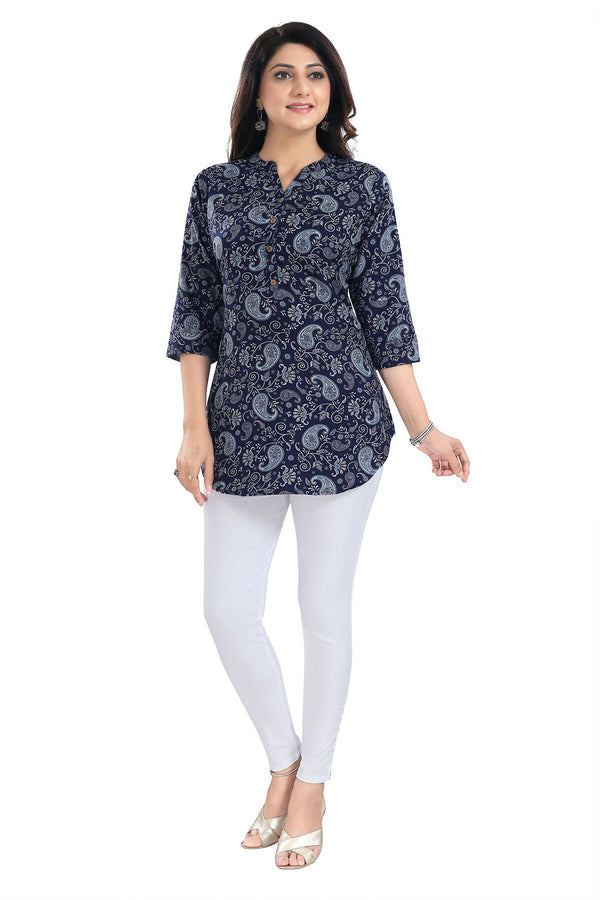 Snehal Creations Ethnic Galore Blue Short Tunic Top for Women Color: Blue Material: Polyester Legal Disclaimer: Product color may slightly vary d...