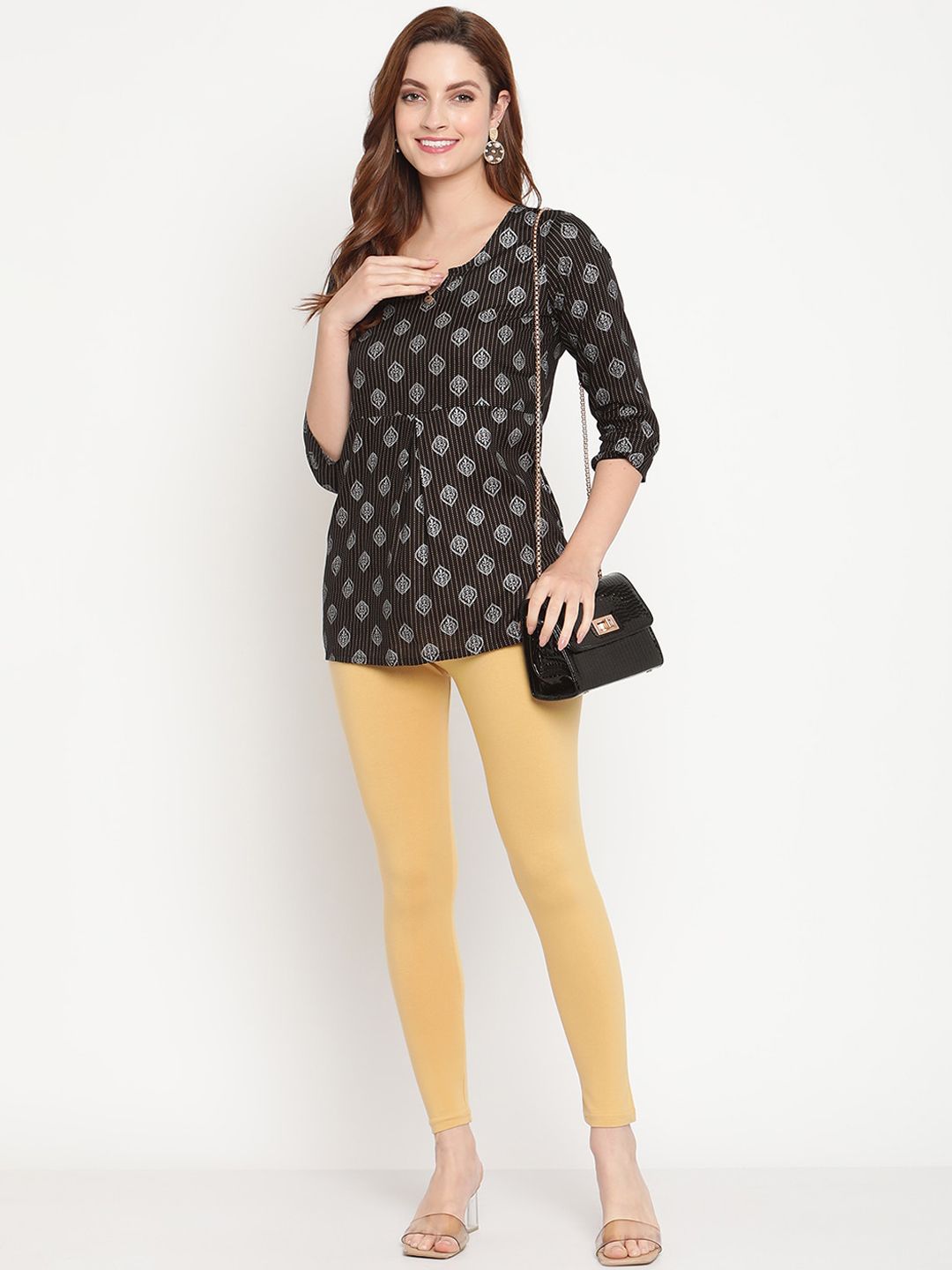 Complete your stylish casual look with this pair of Ankle Length Leggings from TAG 7. Style this with a contrasting kurta, a mini bag, and flat sandals for an eye-catchy casual look.