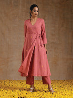 trueBrowns Blush Gold Cotton Angrakha Kurta Set - 2XS