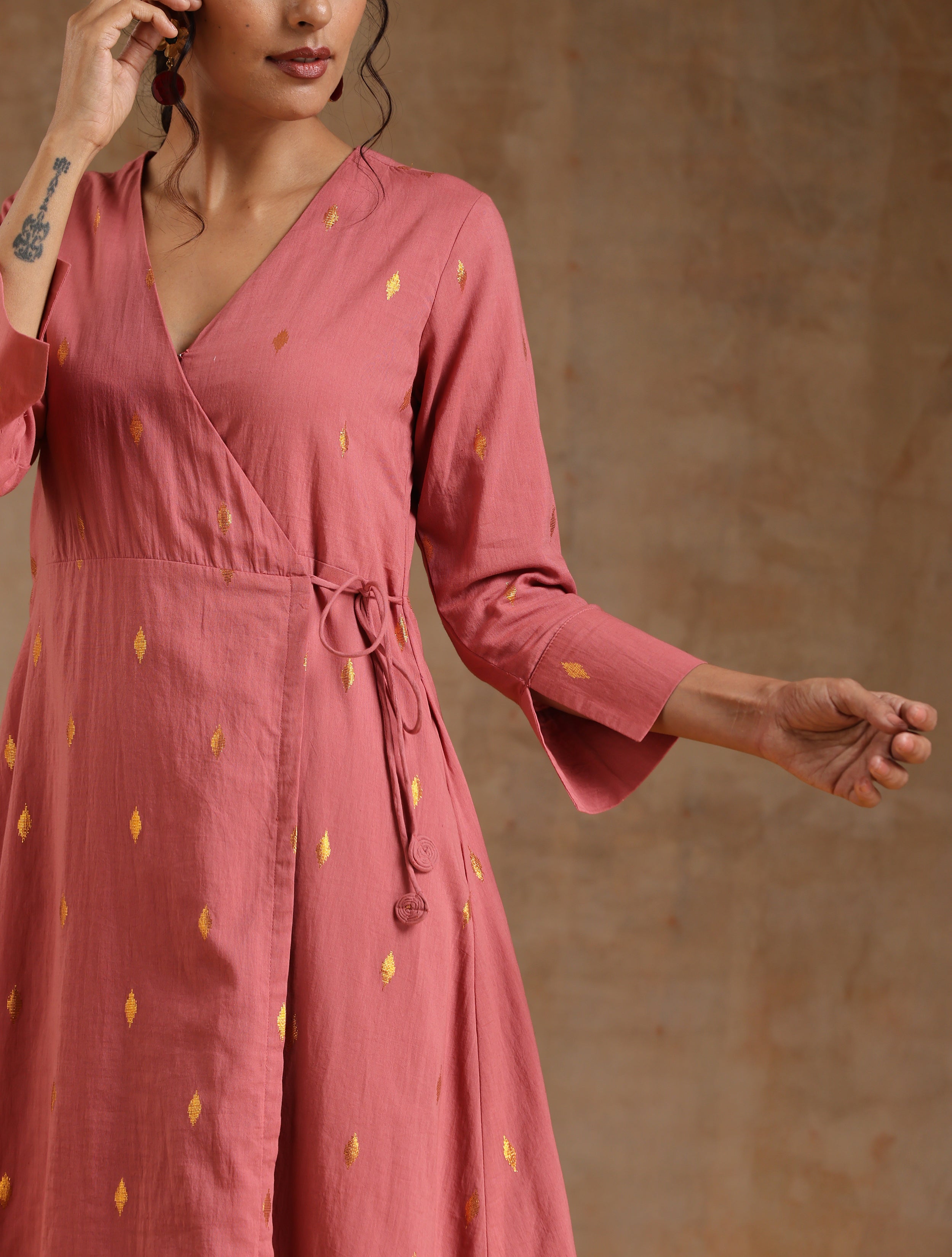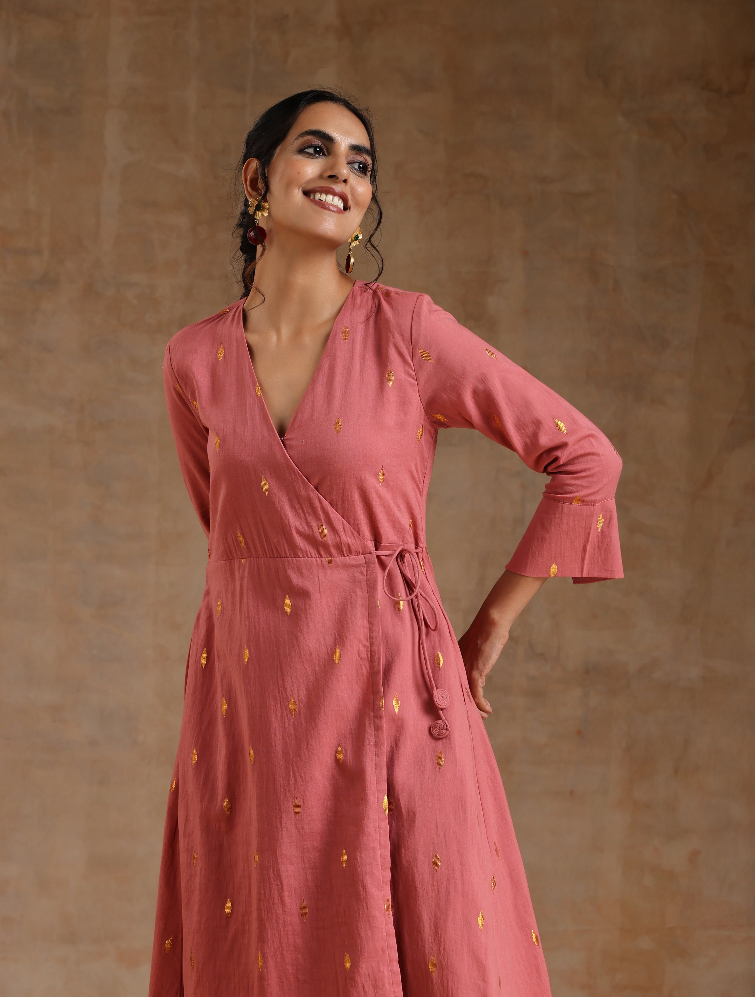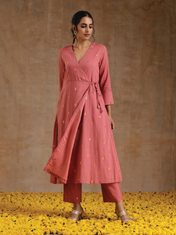 trueBrowns Blush Gold Cotton Angrakha Kurta Set