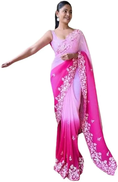 Vamika Embroidery Pink Georgette Bollywood Saree - Distacart
