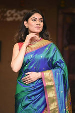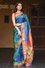 This is a Premium Handloom High-Quality Silk Paithani! It takes a complete 1.5 months to weave this masterpiece, woven with complete detailing by our skilled weavers. This most exclusive Muniya border paithani is a true testament of grace. Our Exclusive Handloom Pure Silk Muniya Border Saree is a product of sophisticated craftsmanship . The beautiful colors blend seamlessly to give you a look for just any occasion! The charm of this saree comes from its grand VMI SPECIAL Bageecha Pallu. This saree is woven with 100% authentic pure silk! We are sure you will have an instant love affair with this piece!