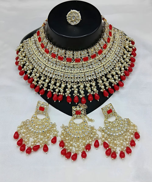 Jewel City Royal Pearl and Crystal Choker Set - Gold-Plated Wedding Jewelry with Earrings and Ring Color: Red Material: Alloy This luxurious brid...