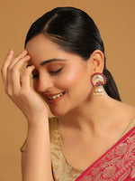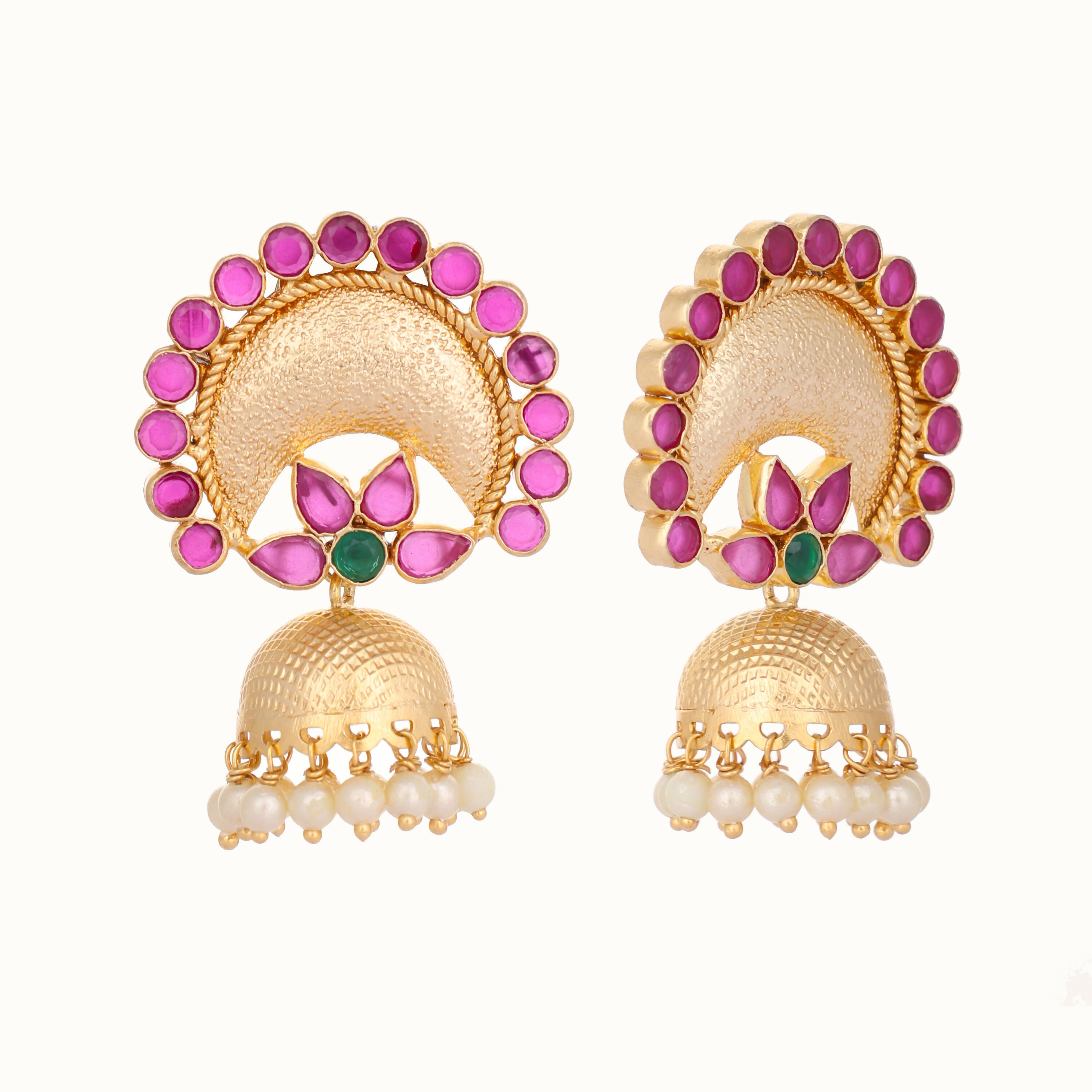 Nuyug 22K Gold Plated Ruby & Pearl Studded Dome Shaped Jhumkas