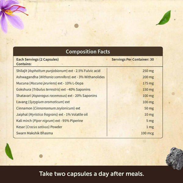 Neuherbs Sj Gold Ultra Capsules Ingredients: Sj original Ashwagandha Gokshura Shatavari Lavang Cinnamon Jaiphal Kali Mirch Kesar & Swarna Bhas...