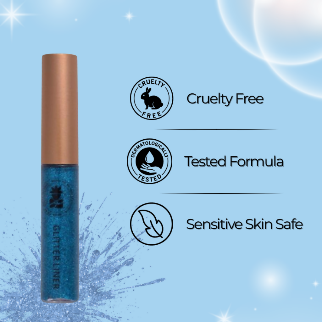 BOBI Glitter Eyeliner in Blue Diamond Sparkle Finish provides a decorative glitter effect for the eyes. It can be used alone or layered over other eyeliners to achieve a variety of eye makeup styles. Suitable for everyday or special-occasion makeup routines.