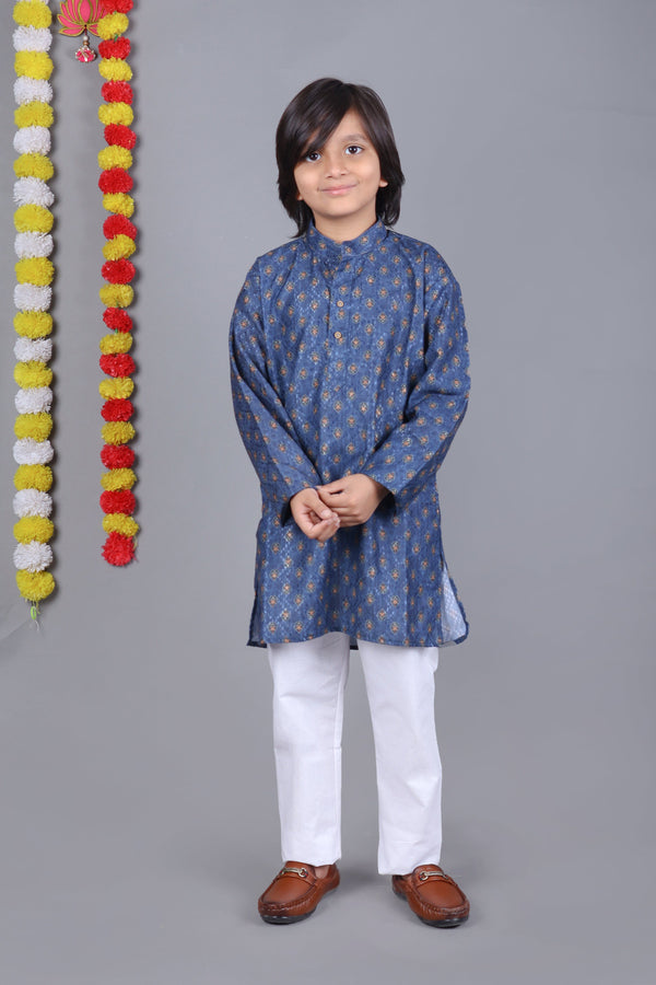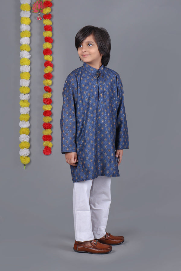 Bluesaanchi Blue Printed Kurta Set – Elegant & Classic for Your Little One