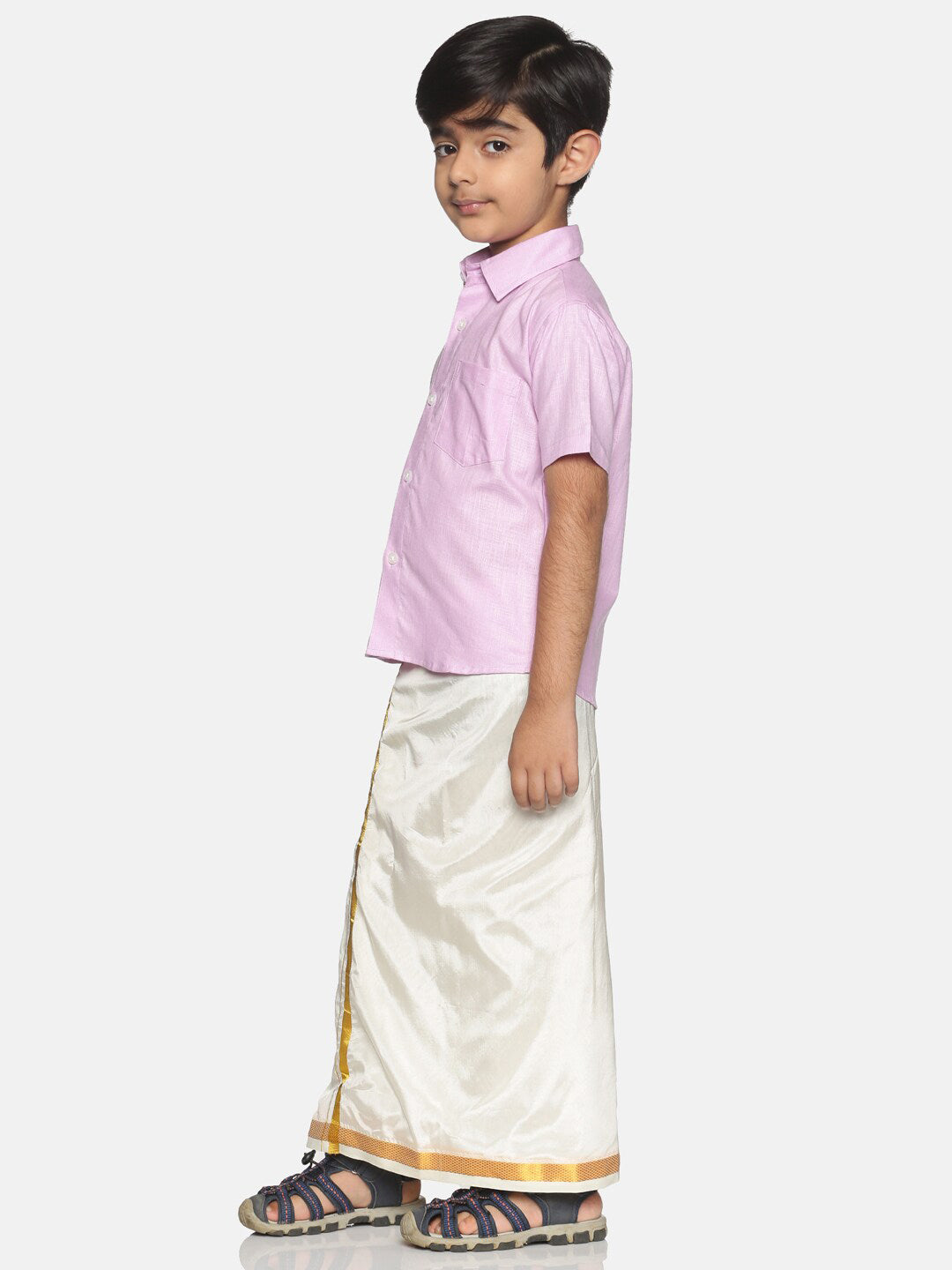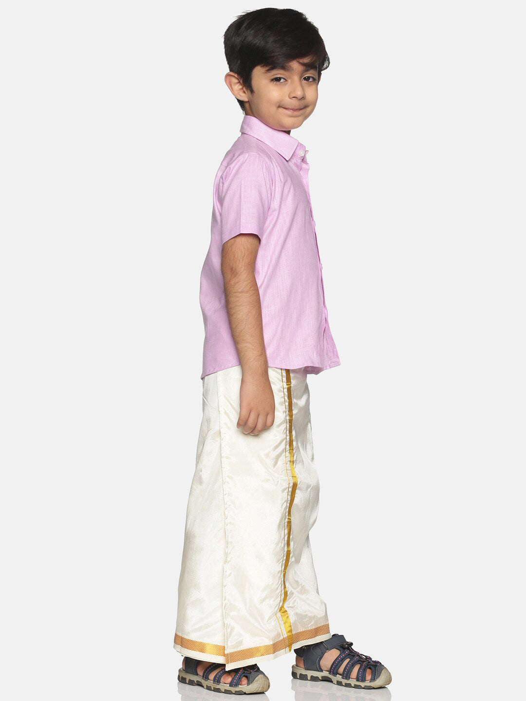 Sethukrishna Boys Pink & White Solid Shirt with Veshti Set