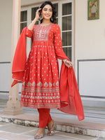 Janasya Bright Cotton Foil Print A-Line Kurta Set