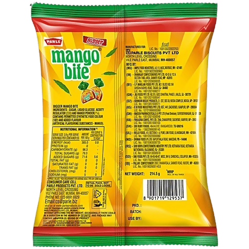 Parle Bigger Mango Bite CandyAbout the product:Indulge in the juicy, mouthwatering goodness of Parle's Bigger Mango Bite. This hard-boiled candy fe...