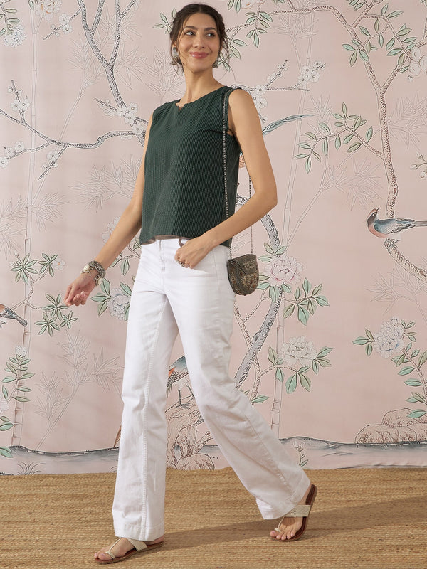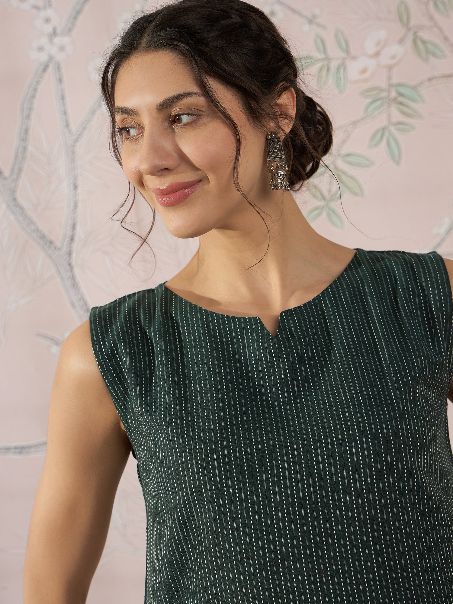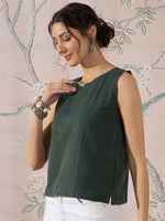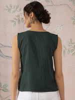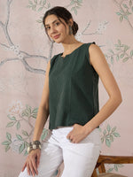 The Dark Green Sleeveless Kantha Top is a perfect blend of traditional craftsmanship and modern style.
