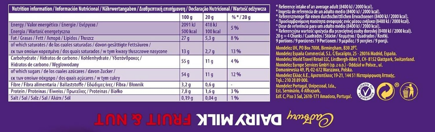 Cadbury Dairy Milk Fruit & Nut Milk Chocolate Candy BarsAbout the Product: Discover the Cadbury deliciously creamy milk chocolate bar with rais...