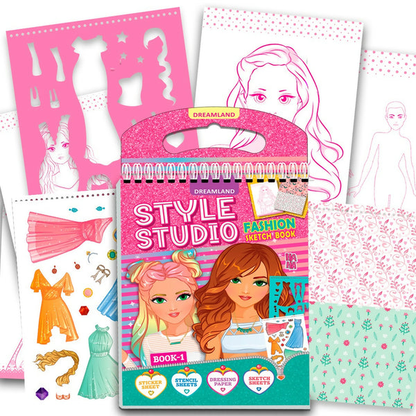 The Style Studio Fashion Sketch Activity Book is a creative activity set designed for young girls aged 4 to 8 years. This kit provides a combination of sketch pages, dressing paper, stencil sheets, and stickers, allowing children to explore fashion design and creative play. The activity book is suitable for individual or group use, providing an engaging and hands-on experience for fashion sketching and design.