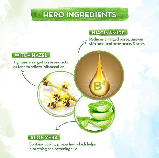 Mamaearth Niacin Face Toner for acne tightens the pores without over-drying your skin. Its antioxidant properties will reduce blemishes and other dark spots to give you a more even-toned complexion.